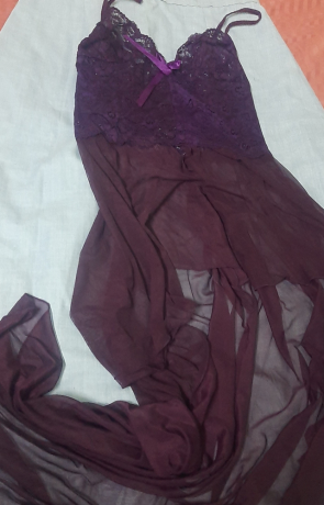 قميص نوم حريمي تل بنفسجى قطعة واحدة للبيع