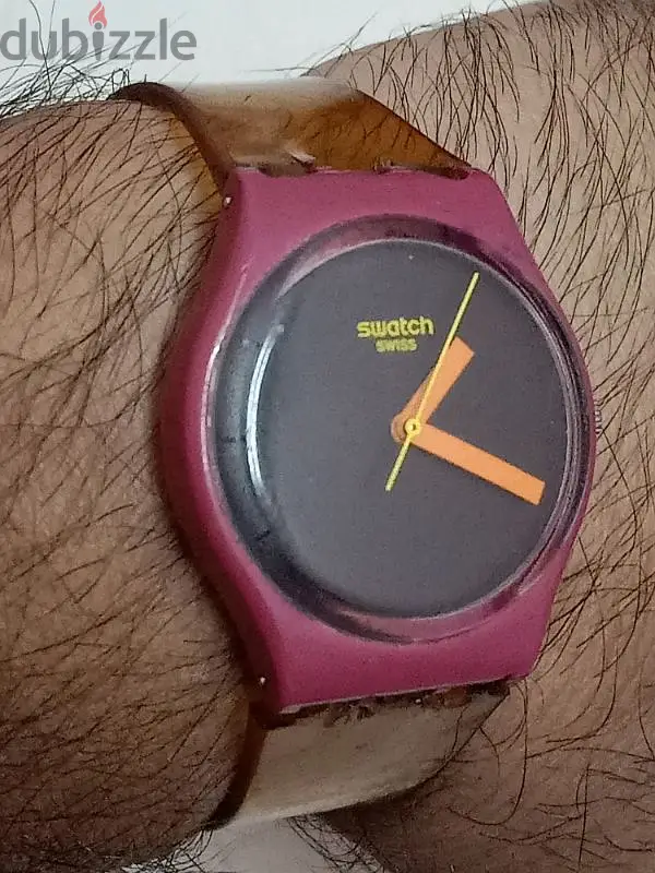 للبيع أجمل وأشيك ساعة سويسرى حريمى كوارتز ماركة سواتش أصلية سويسرية قمة فى الشياكة والجمال لون مميز ومختلف بحالة ممتازة وتعمل بكل دقة
