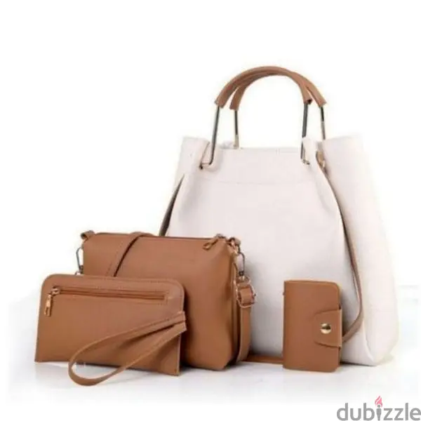 متوفر بيها أربع قطع شنطه يد وشنطه كروس ومحفظه لجمع الاموال