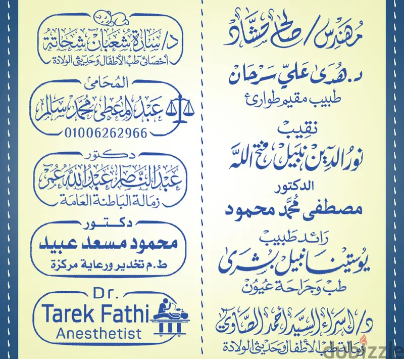 الوصف:عمل ختم محامي واكلاشيه طبيب وختم دكتور وختم محاسب قانوني وختم مهندس
